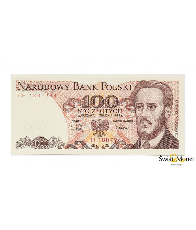 100 zł Ludwik Waryński 1988 seria TH UNC