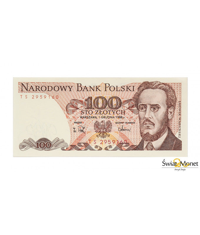 100 zł Ludwik Waryński 1988 seria TS UNC