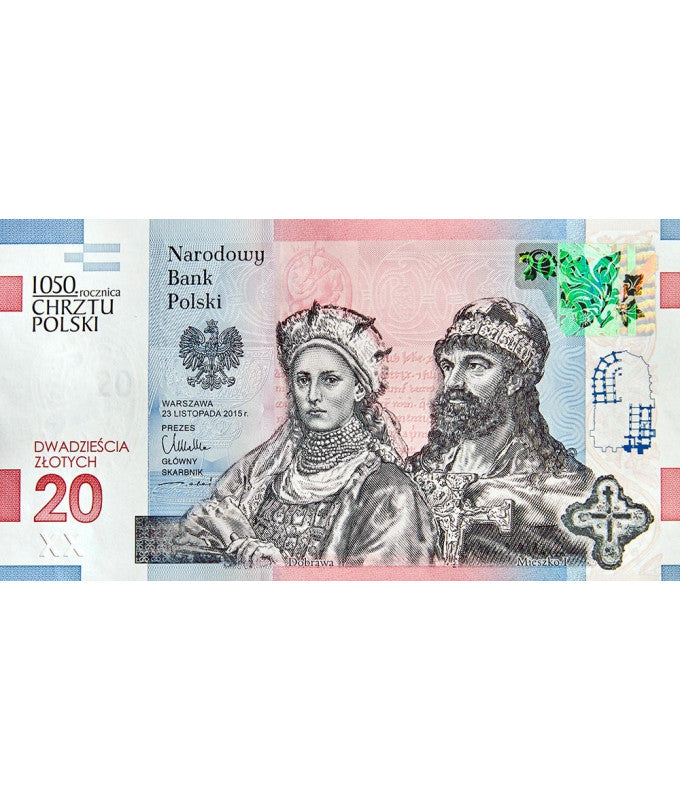 Banknot 20 zł 1050. rocznica chrztu Polski z 2016 roku to ósmy banknot kolekcjonerski wyemitowany przez NBP. Jego wartość rynkowa znacznie przewyższa nominalną.
