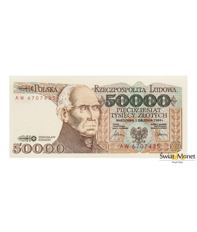 50 000 zł Stanisław Staszic 1989 seria AW UNC