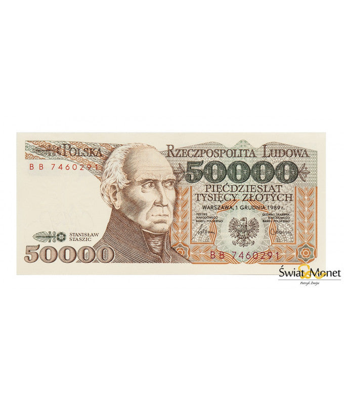 50 000 zł Stanisław Staszic 1989 seria BB UNC