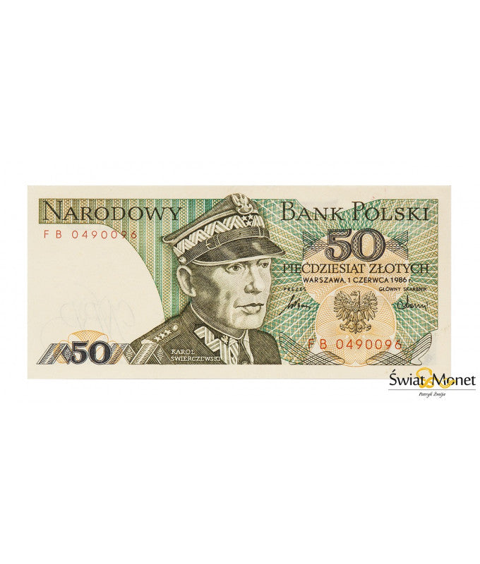 50 zł Karol Świerczewski 1986 seria FB UNC