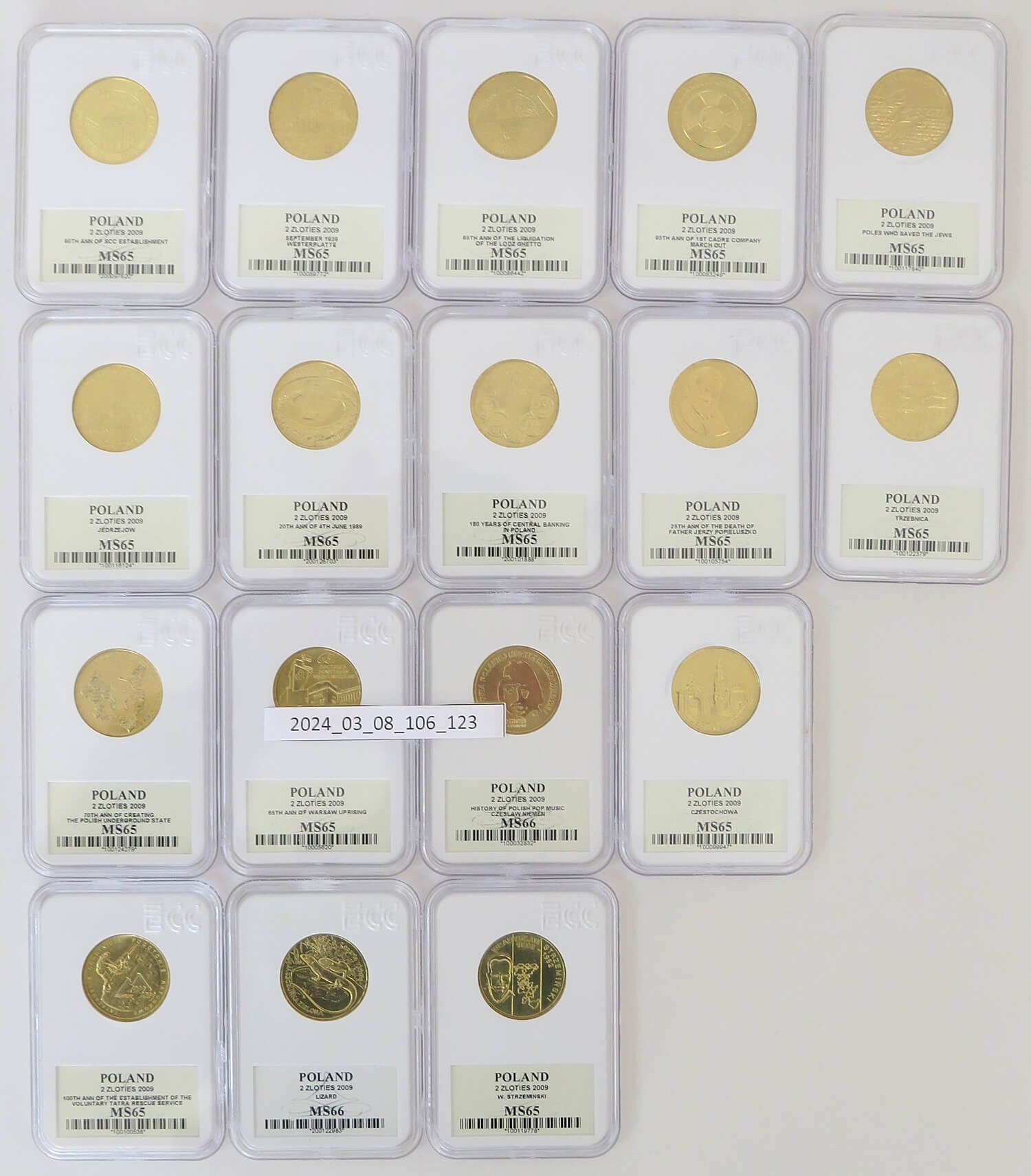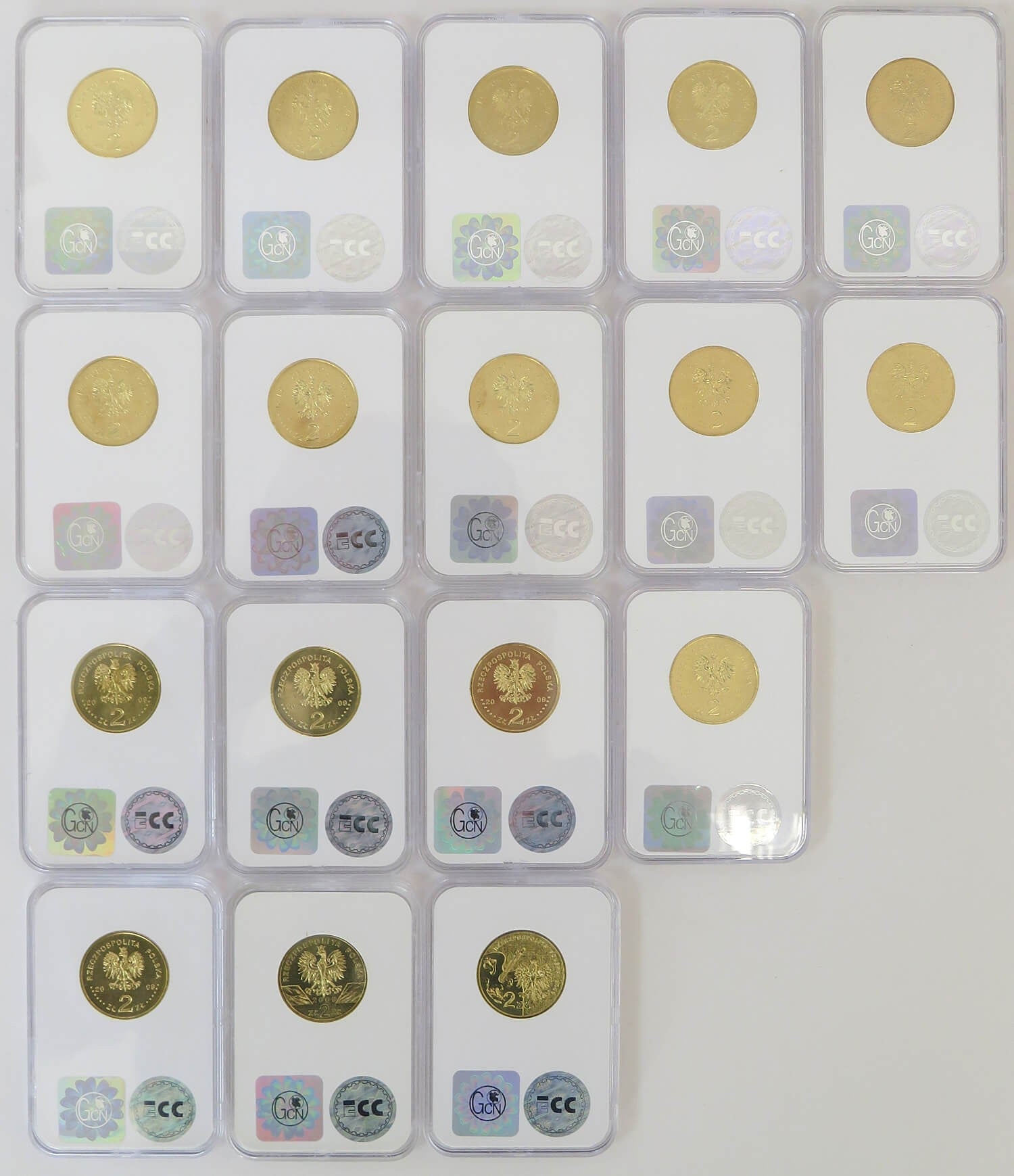 Pełny komplet 17 monet 2 zł GN rocznik 2009, grading GCN MS65-MS66, mennicze