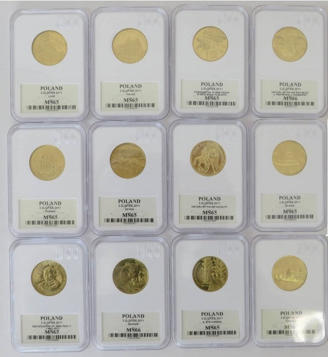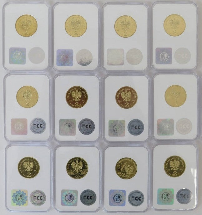 Zestaw 12 monet 2 zł GN rocznik 2011, grading GCN MS65-MS66, mennicze